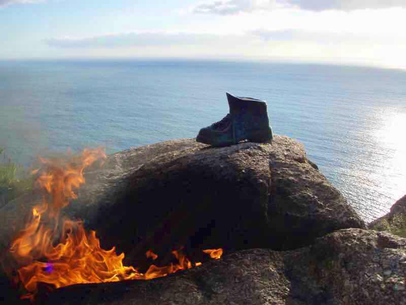 58/60サンティアゴ巡礼終了夕焼けの儀式・最後まで残った持ち物